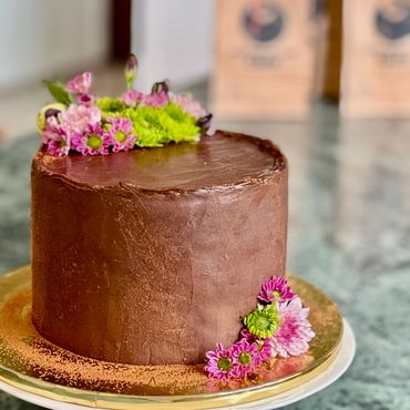 Rich and dense with chocolate, prepared with fresh ground jowar flour, 55% dark chocolate, soaked in fresh coffee extract and layered with chocolate ganache.